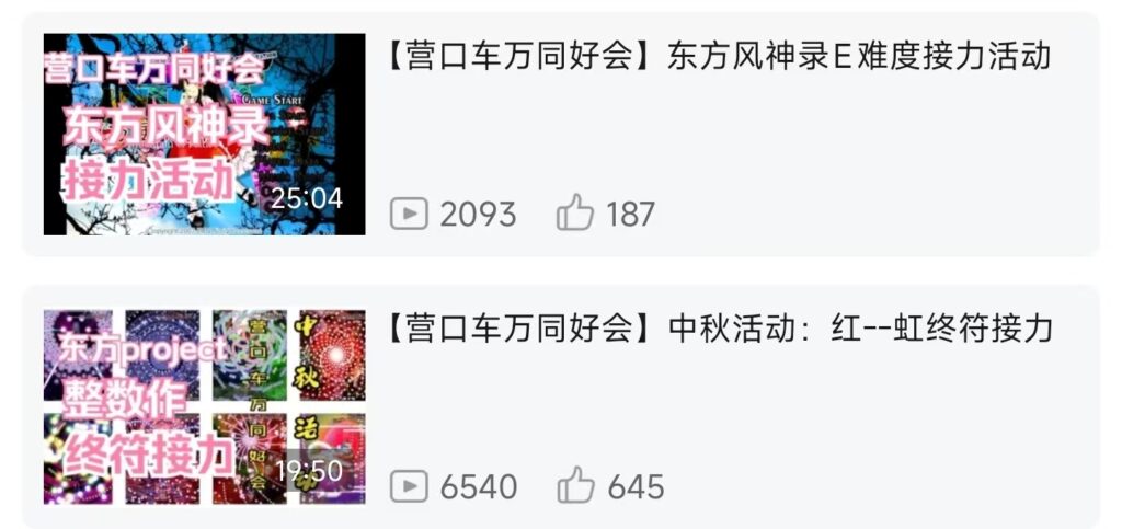 B站等自媒体视频平台因为有大数据推送机制,你发布的内容更容易被推荐给车万人,通过这种渠道宣发效率更高,所以根据我们的经验,不论高校还是地方的车万社群,使用自媒体视频平台如B站来进行社群宣传,效果最佳。(车万人可能不看贴吧,也可能不看校园墙,但不大可能不看B站)宣发的内容最好是高质量的东方同人作品,如果你不具备创作高质量同人作品的技术力,也可以整一些和东方project相关的活,比如一些简单的同人歌曲翻唱,乐器演奏等。如果没技术力还不好意思整活,还可以通过组织一些线上或者线下的与东方project相关的小游戏一类的活动,比如STG接力,车万画猜等。(接力缺人手可以一个人接两面甚至三面)