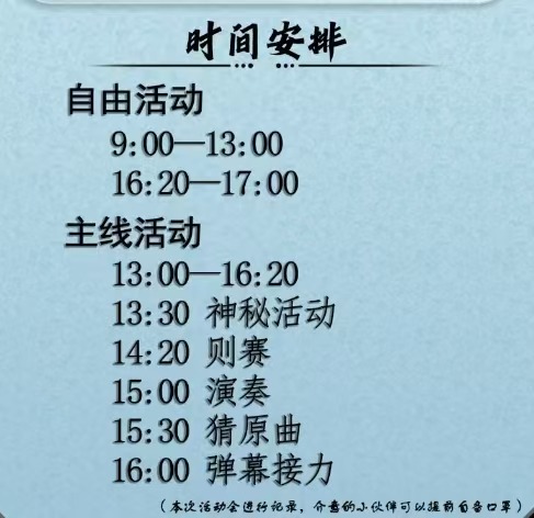 活动具体内容的时间安排可以较为灵活,一般可以选在上午10点开始,中午留足休息时间即可,笔者这里习惯在活动结束后组织聚餐,也可以提前统计好人数妥善安排。